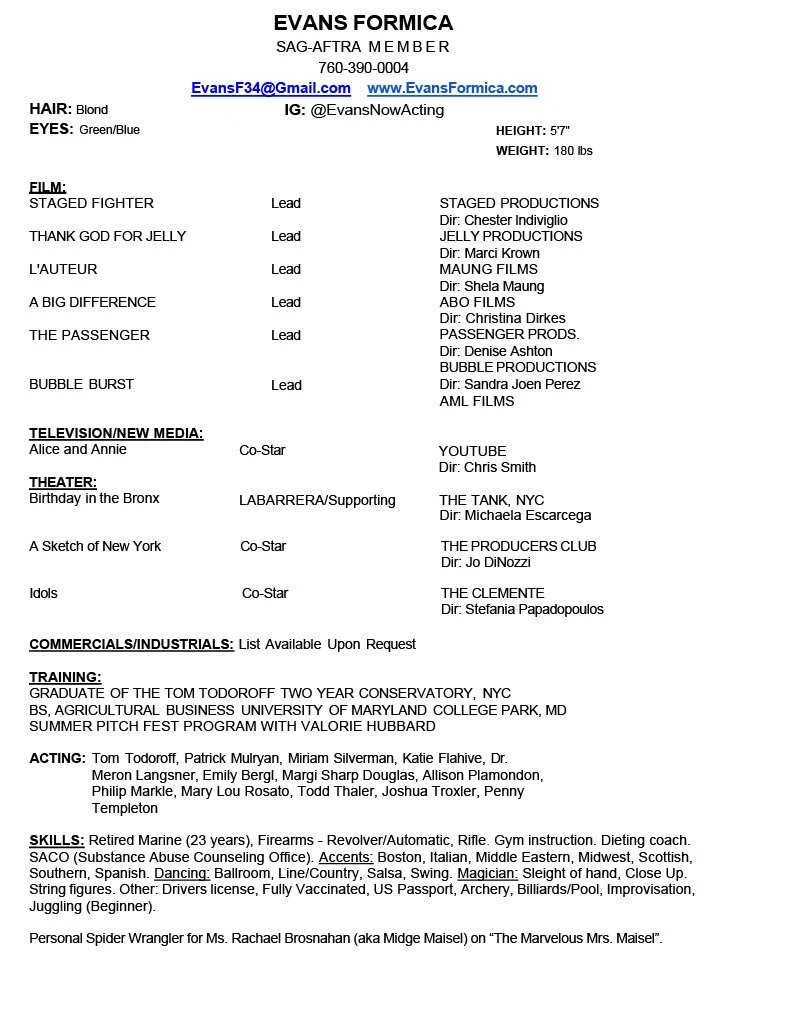 Evans began performing in high school as a magician. This was his part time job throughout college. After graduation, he joined the military and retired after a successful career. Post retirement, the acting bug bit again. Evans applied to and was accepted to the Tom Todoroff Acting Conservatory in Manhattan, NY. During his two years of intense training, Evans still found time to star in an independent film, several local commercials, and industrials. After graduation, Evans first big role was as a supporting character in the play, “Birthday in the Bronx”. As luck would have it, the play finished the full run just before the covid pandemic struck New York. Even quarantine conditions could not stop Evans from continuing to follow his acting dreams. He made the seamless transition from in-person training to online training. He is continuing his studies in acting through classes, independent reading, and a wide variety of interactive forums.